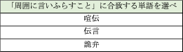 ※テスト体験の答え:喧伝(世間に言いはやし伝えること。)