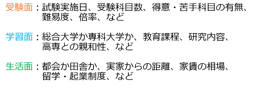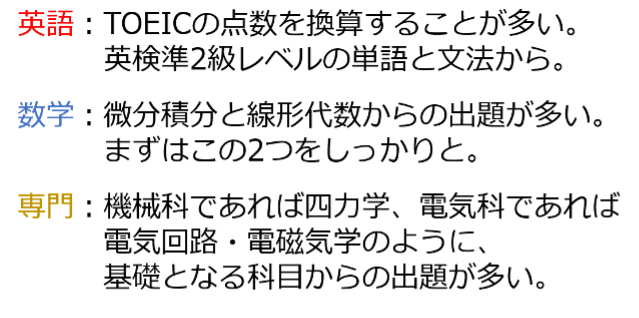 もちろん他学部を受験することは可能ですが、募集人員として高専卒業生を受け付けていない、または習ったことのない専門科目を受験することになる場合があるので注意しましょう。
