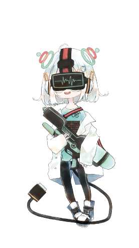 作者のduskさんにお話を聞くと、『描くときは、サイバーなかっこよさと学生の爽やかさを両立させることが難しかったです。頭身低めのキャラクターは,細かい描き込みができないのでシンプルに可愛く仕上げるのも苦労しました。』
