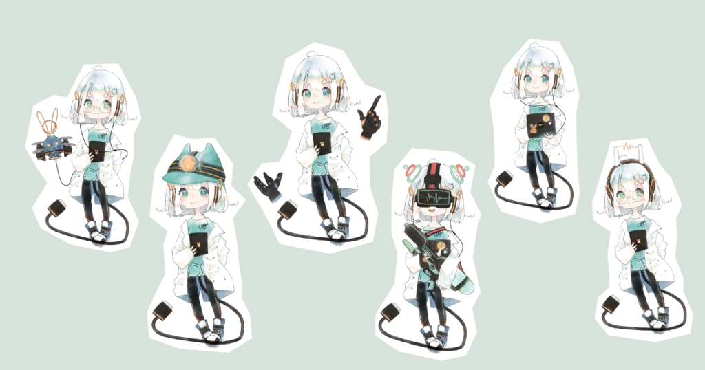 高専は専攻ごとに学科やコースが分かれているので、様々な専攻の学生さんに親しんでもらえるようにしたい!と思い、アイテムを別途描いていただきました!