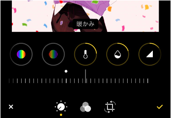 彩度や色味の調整はスマホに元からあるアルバムから色々調整できるのでいつもそれを利用しています。