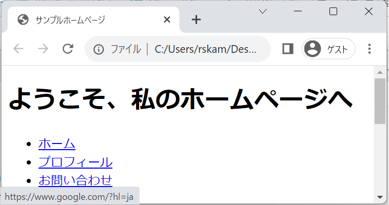 変更前のリンクはhtmlファイルを保存したファイルのリンクになっているのに対し、変更後はGoogleのリンクになっていました!!