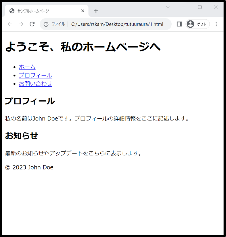 ChatGPTに考えてもらったコードをメモ帳に書きその拡張子をhtmlに書き換える