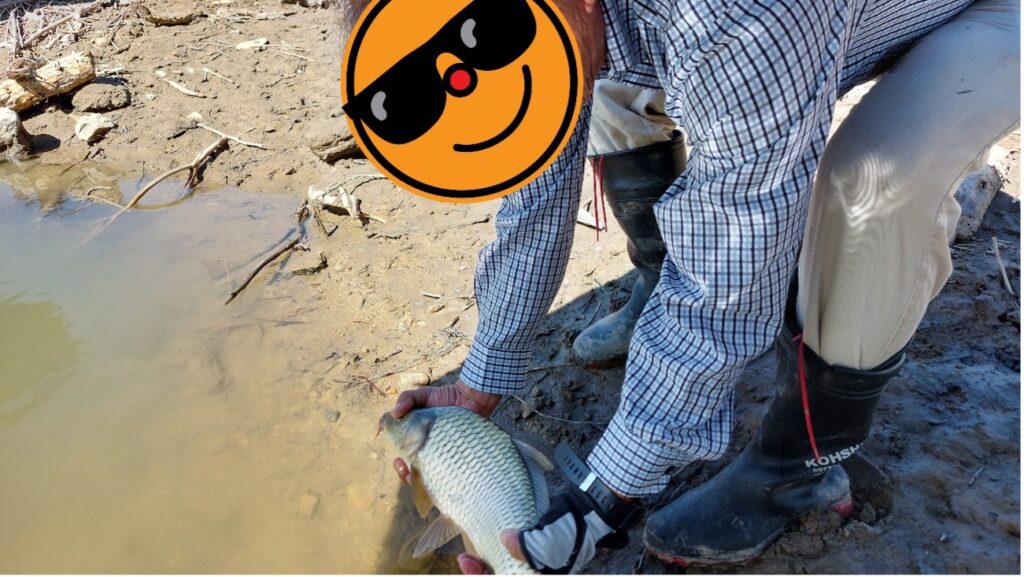 大叔父さんが尺五寸(約45cm)の鯉を吊り上げました!デカいです!