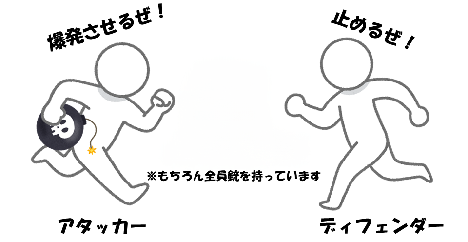 爆弾を爆発させる、いわゆる「爆破ゲー」で、決まった位置に時限爆弾を設置して爆発させることが目的の「アタッカー」と、それを阻止する「ディフェンダー」に分かれて戦います。