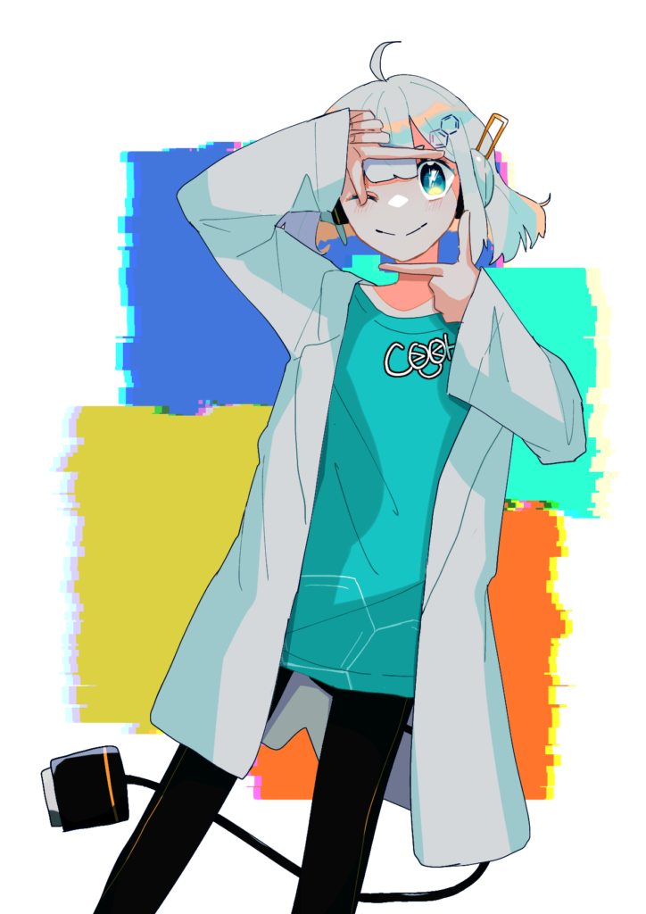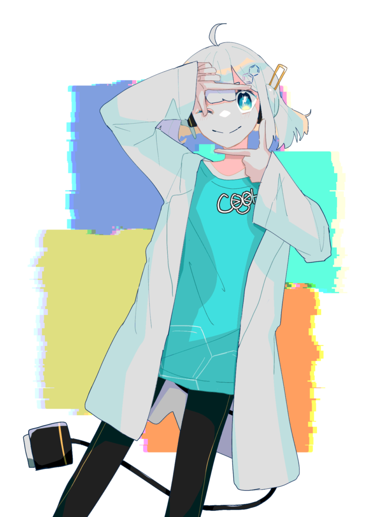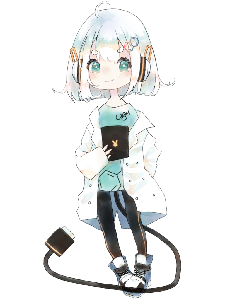 かなり大きい白衣なので萌え袖にしました。シワがそれっぽく描けて嬉しいです。