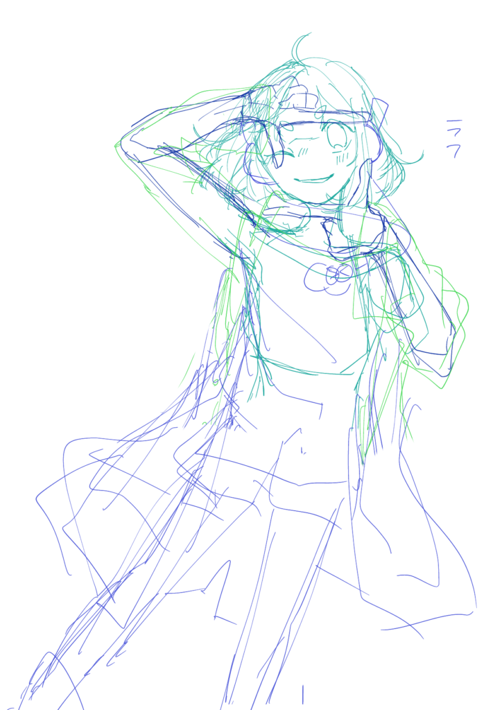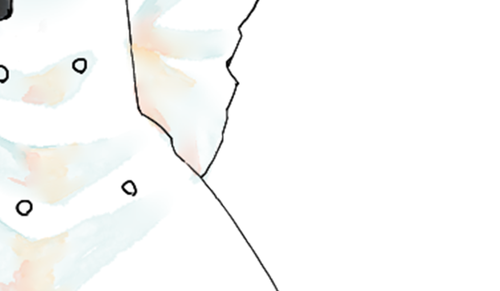 ラフ時点では表情が少し違ったり、シャツの下にズボンがあったりしたのですが、線画を描くときの気分によってラフから変わったりします。