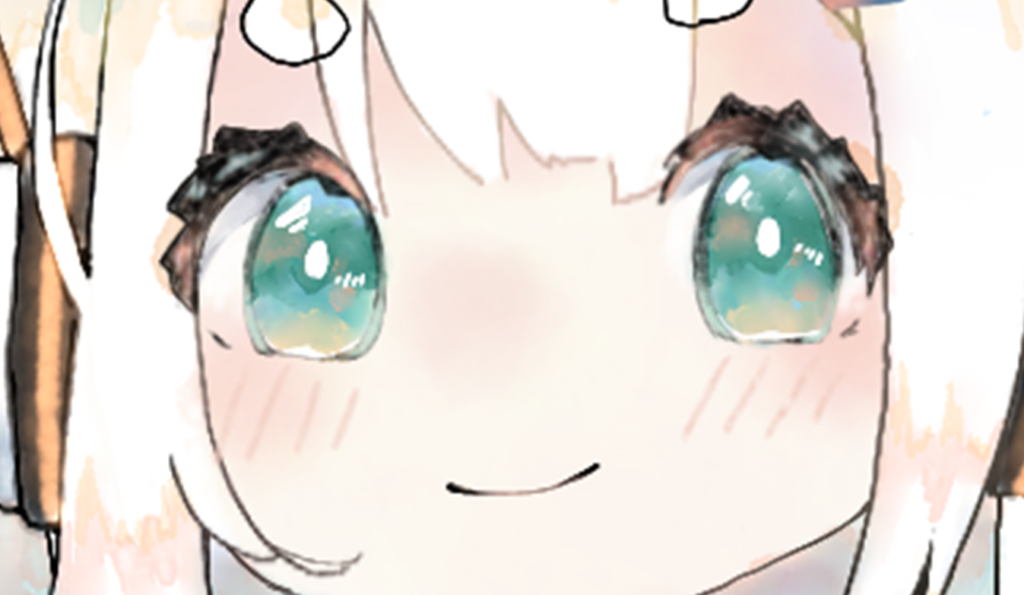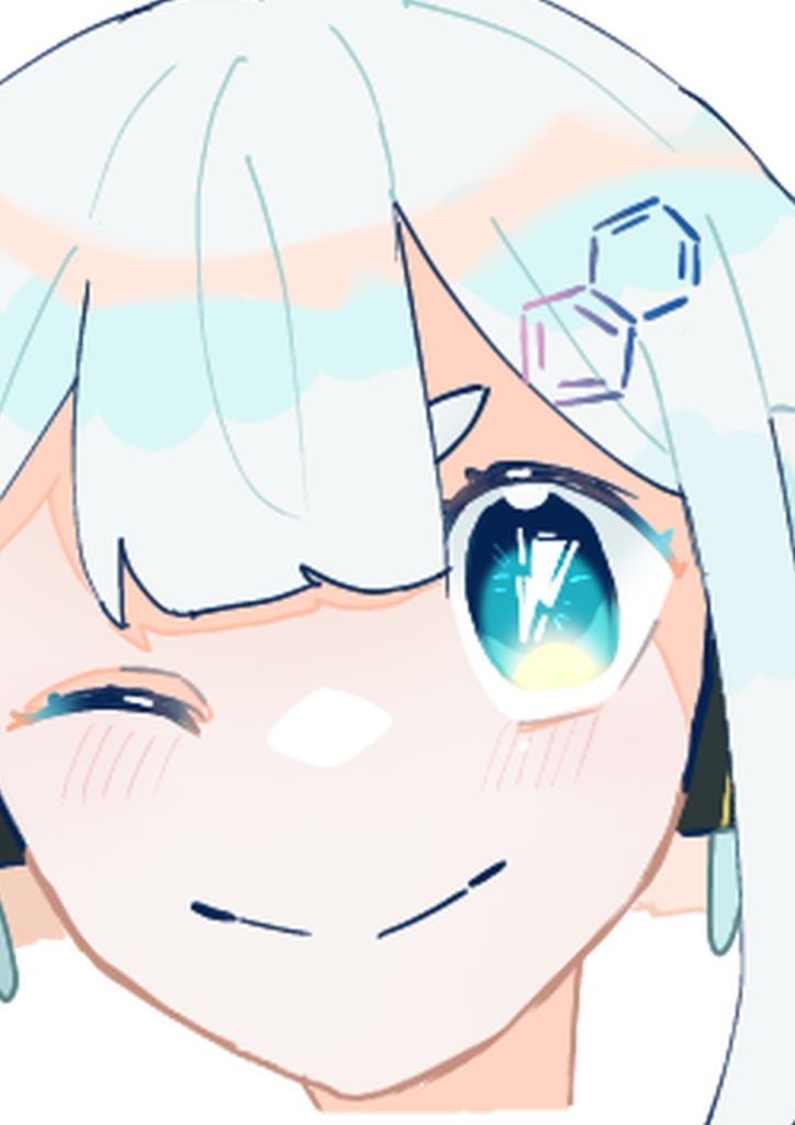 青色の瞳に黄色でハイライトを入れ、目の縁を瞳の色とオレンジで塗り、真ん中に稲妻マークを入れて電気要素を入れてみました。
