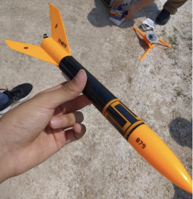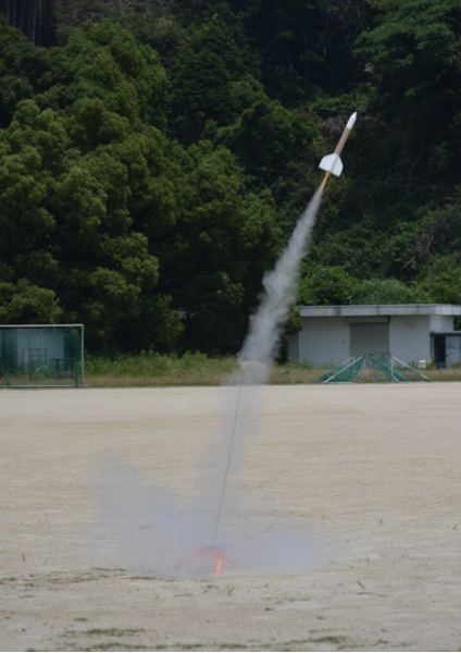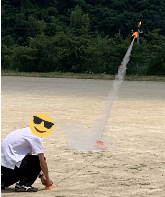僕が飛ばしたのは水ではなく火薬燃料を用いた(危険なため火薬量に応じて資格をもった人が必要)模型ロケットです。