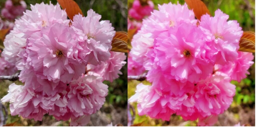 少し鮮やかさが足りなかったので赤色を強調させ、少しぼかしを入れて春の淡さを