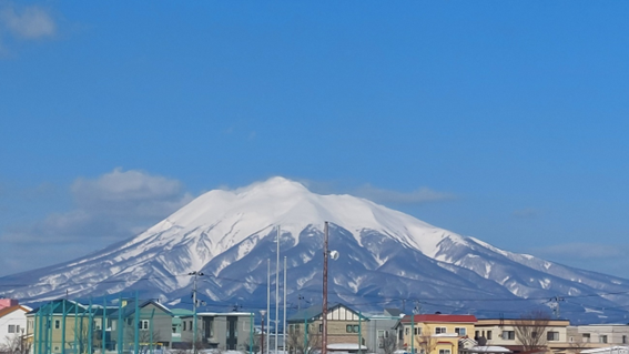(津軽富士とも称される津軽地方にある岩木山です!今日はいい天気ですね!)