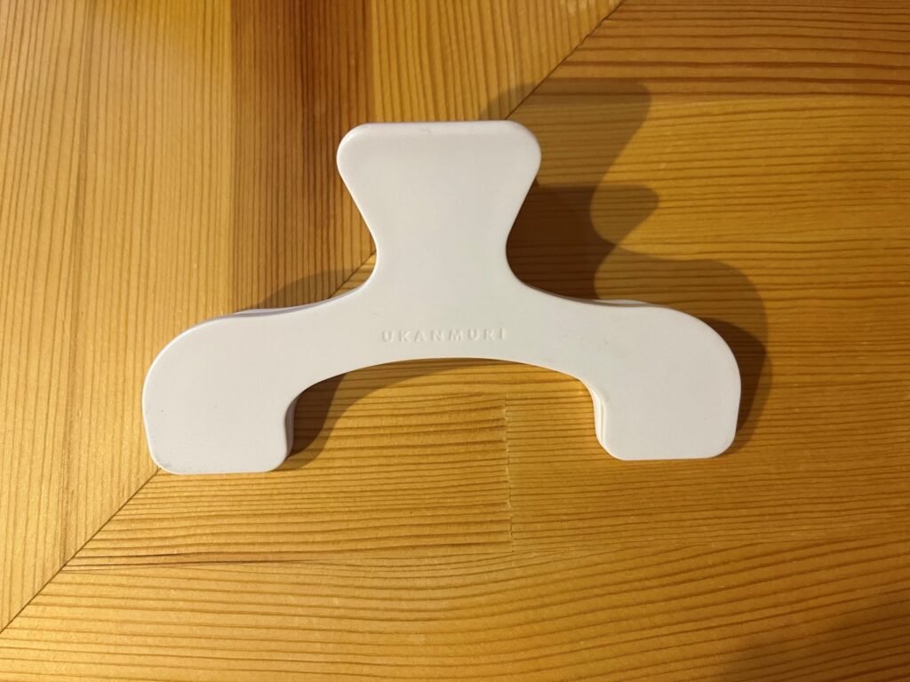 ウカンムリクリップは名前の通り漢字の部首であるうかんむりのような形をしており本のノドの部分を避けて両ページを挟むので、本を傷つけることなく安定して開いた状態にしておくことが出来ます。