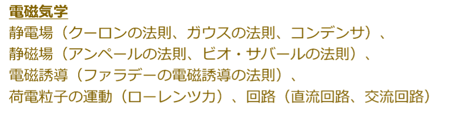 電磁気学は基本的に大学範囲から出題されます。大学範囲ではベクトル解析の表記で表されるため、高校範囲の表記とのギャップによって混乱する可能性が力学よりも高いです。